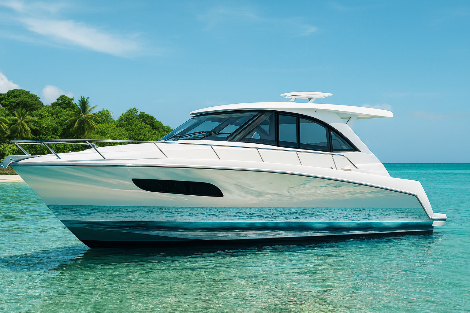 Aqua Mirage Ocean Reflection Boat Wrap – Realistic Water Vinyl Wrap – Marine Grade Boat Decal – Custom Full Side Wrap – Glossy Coastal Design vb026