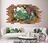 3D Dinosaur Hole in the Decals. Nature Vinyl Stickers. Jurassic World Removable Murals. Dinosaur Above Bed Decor. Peel and Stick NT57