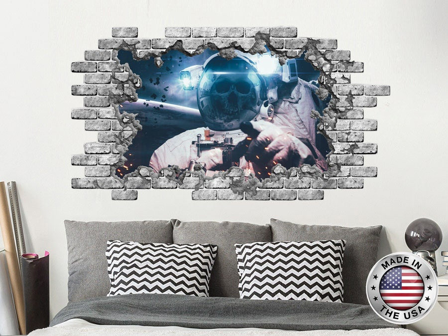 3D Space Hole in the Decals. Skull Astronaut Vinyl Sticker Murals. Cosmonaut Wall Decal. Space...