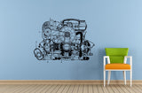 Car Vehicle Automobile Engine Motor Parts Blueprint Wall Decal Vinyl Sticker Mural Room Decor L1840