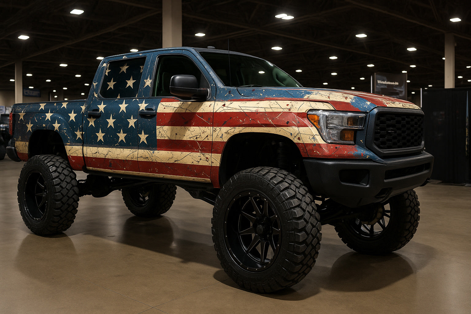 Designed for those who live loud and drive proud, this rugged wrap features a vintage, weathered Stars and Stripes design with a textured metal effect that gives your truck a bold, battle-hardened look. Perfect for lifted builds, off-road trucks, and patriotic enthusiasts who want to showcase their USA spirit in motion.