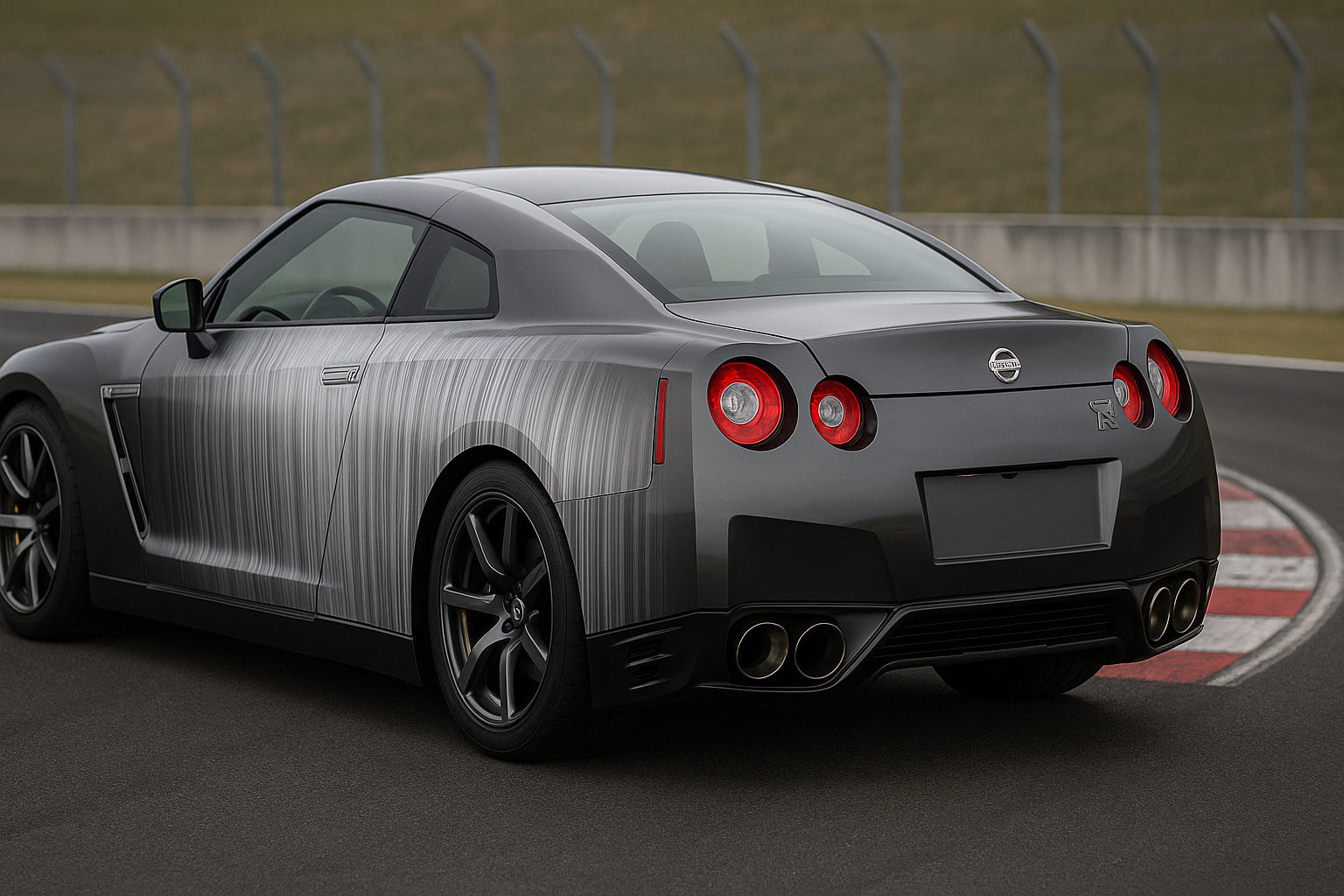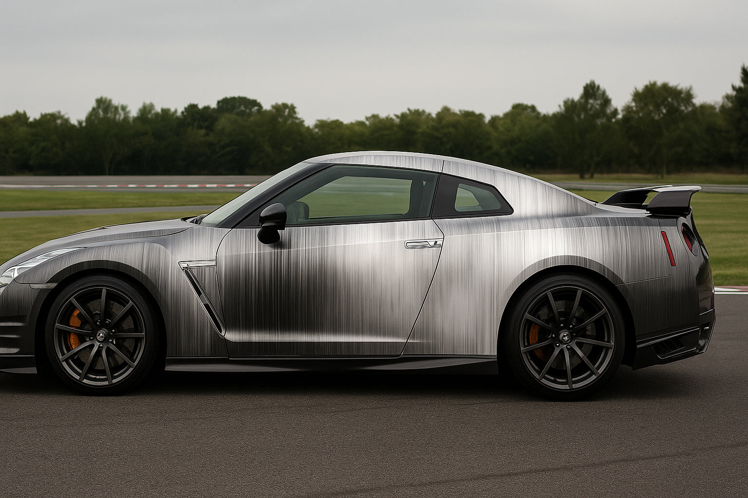 This wrap features a brushed vertical texture that captures and reflects light like real metal, delivering a clean, industrial aesthetic perfect for GT-Rs, sports cars, and performance builds.