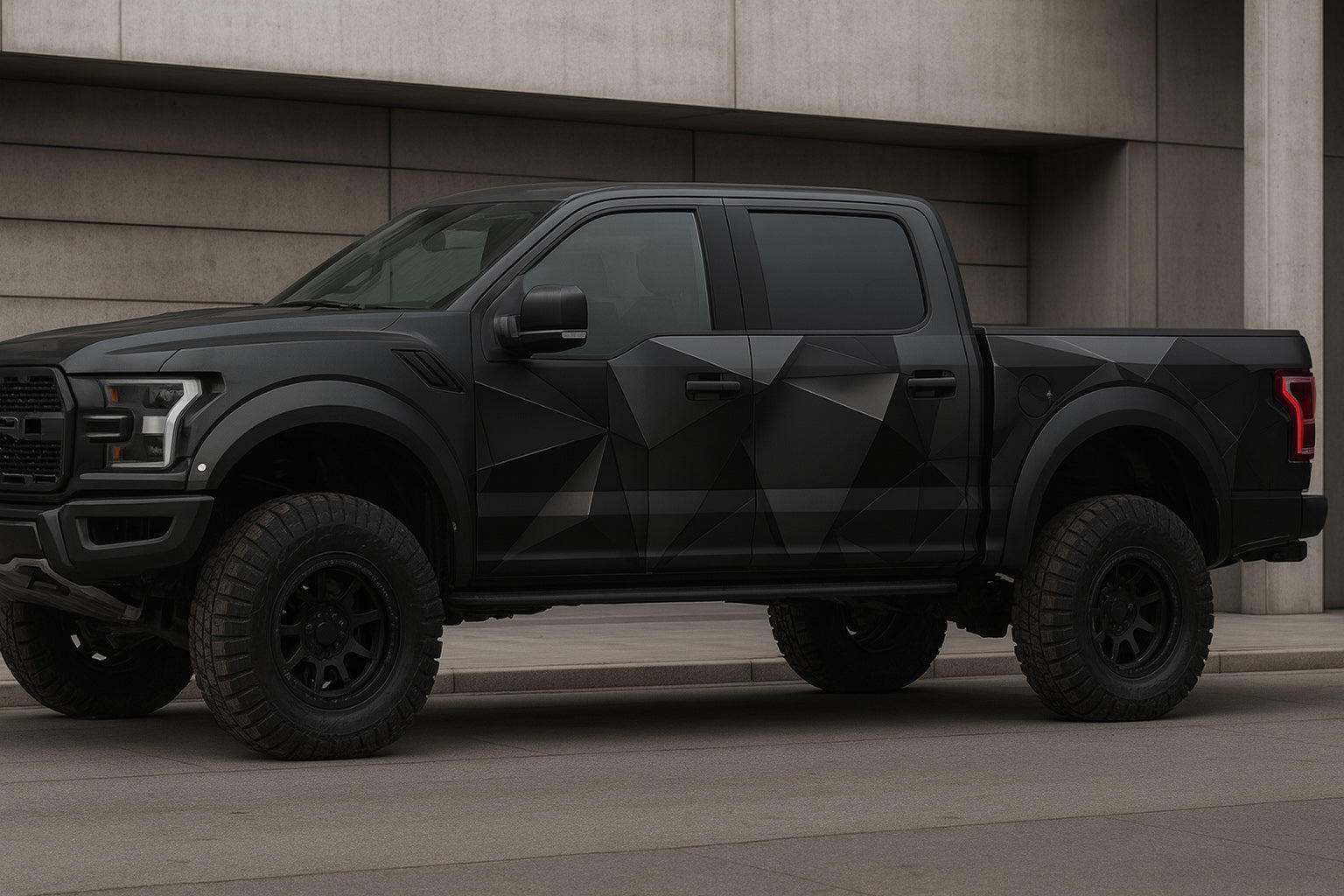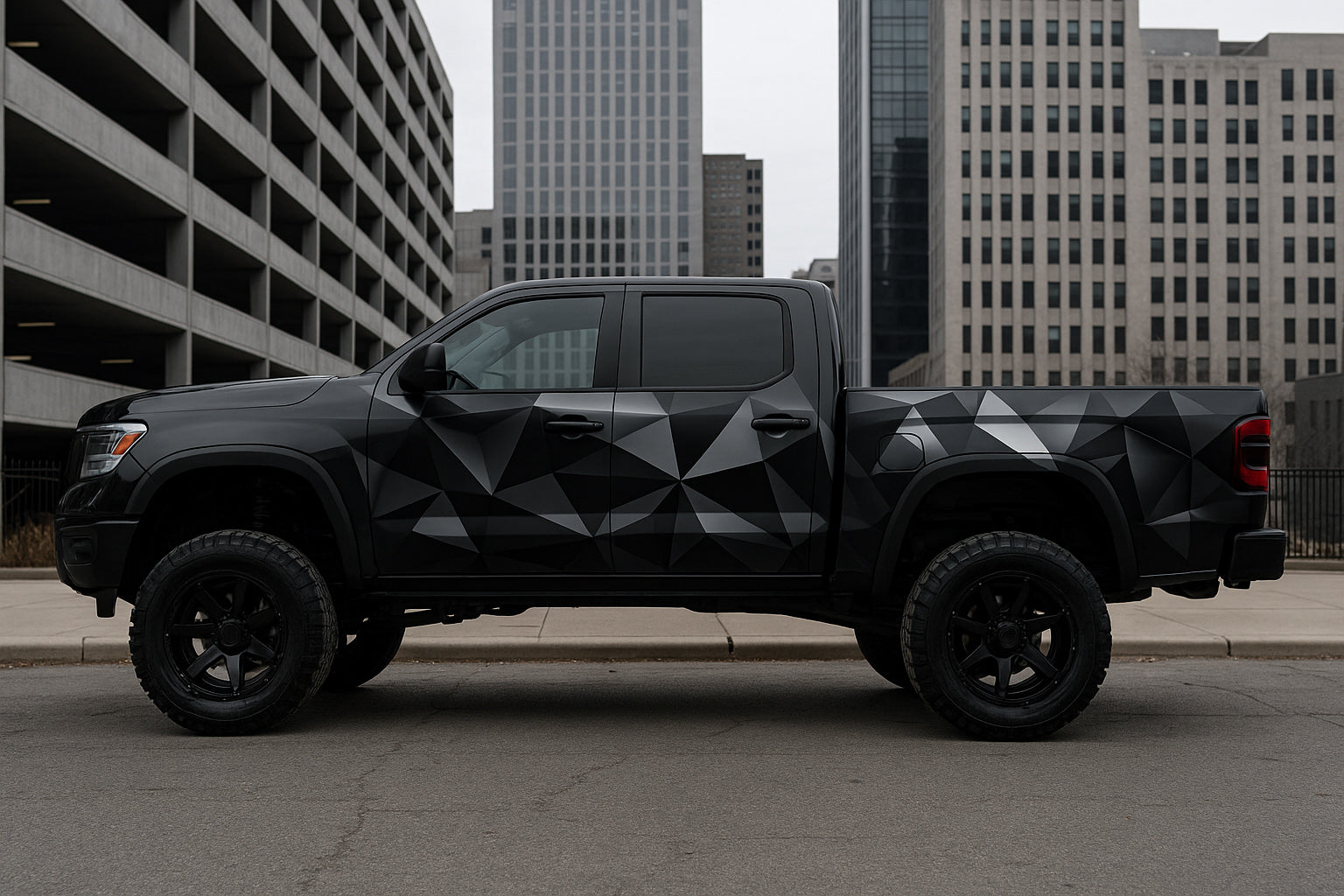 The Matte Black Geometric Truck Wrap by Stickalz fuses stealth-inspired style with futuristic polygonal detail. Built for power and precision, this premium wrap gives your lifted or off-road truck a unique, angular armor look that commands attention wherever you go.