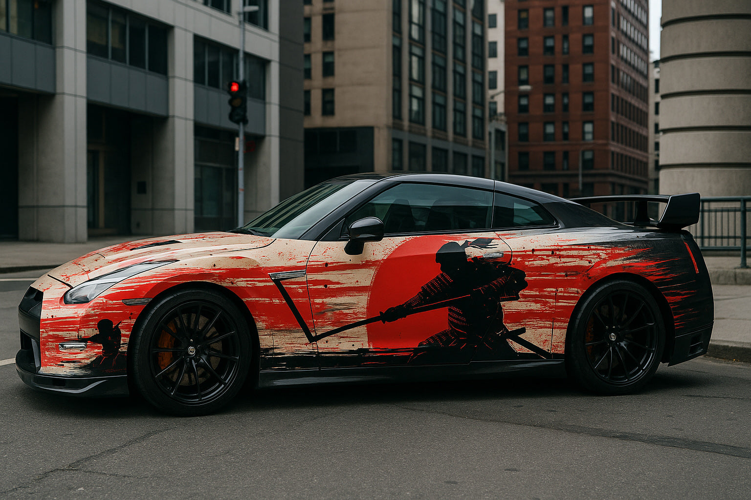 The Samurai Street Car Decal by Stickalz blends Japanese street art culture with motorsport aggression. Featuring a bold red sun background and dynamic samurai silhouette, this high-resolution wrap transforms any JDM, drift, or tuner car into a moving piece of art.