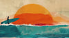 Retro surfer and ocean wave design with sunset tones