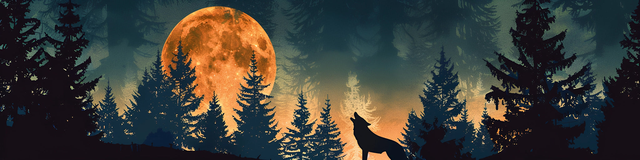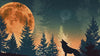 Unleash the call of the wild with the Wolf Moon Forest Wrap by Stickalz — a breathtaking nocturnal design featuring a lone wolf howling beneath a glowing orange moon framed by tall pine trees.