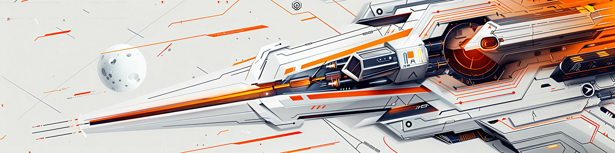 Futuristic white, orange, and silver circuit design
